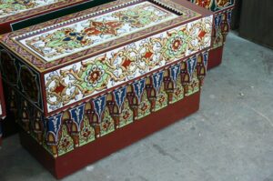 بأيدٍ ماهرة نستلهم جمال الفن الدمشقي الذي خلده التاريخ، من دمشق انطلقنا إلى قصور الملوك والأمراء حول العالم، لنحمل رسالتنا الفنية بكل شغف، وننقل سحر الفن الدمشقي إلى كل زاوية من هذا العالم الفسيح .